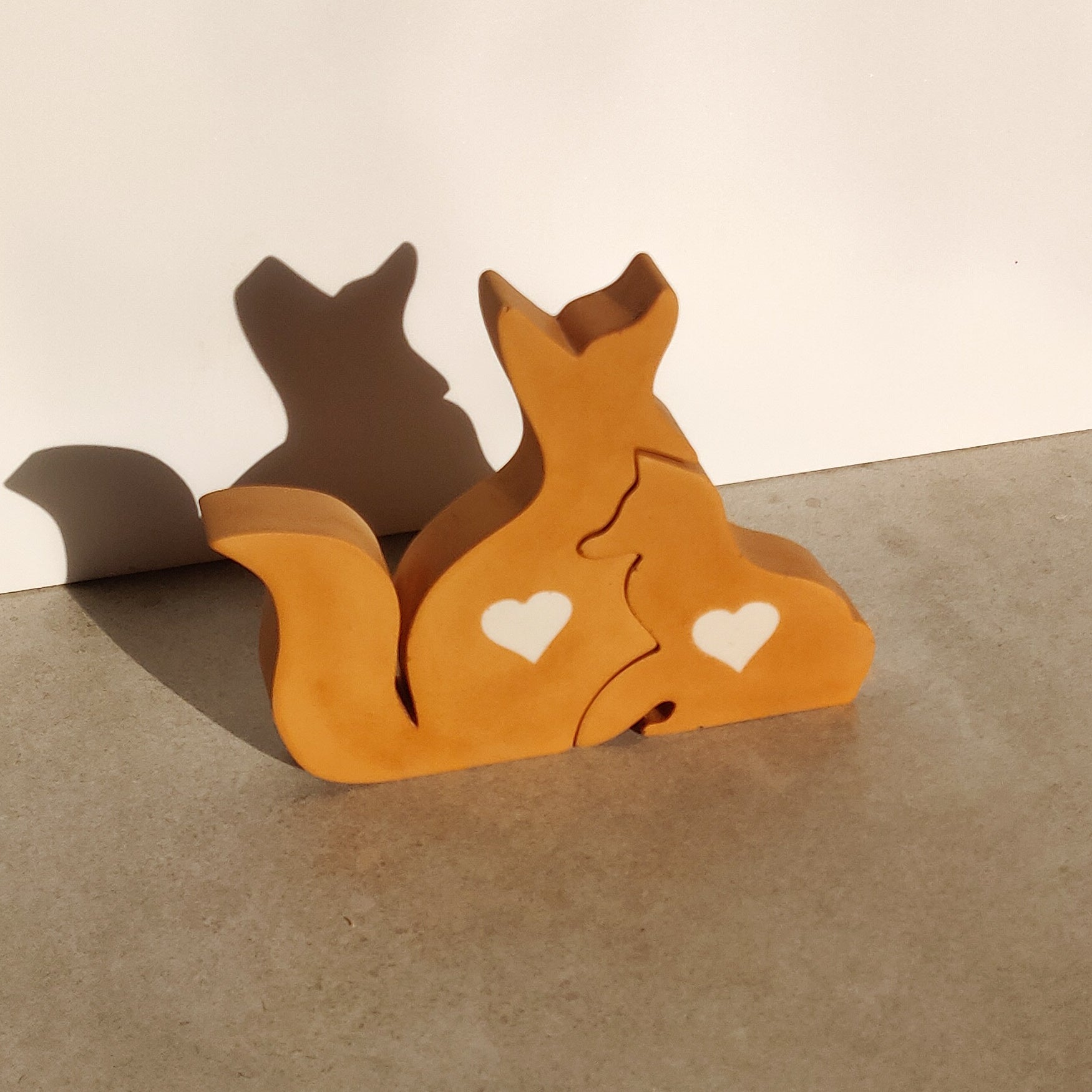 Handmade, cast and finished at our Essex studios, we designed these free standing foxes so they are the perfect match, with the littler one beautifully slotting into the silhouette of the larger one so they are cuddling. Each fox has a little heart in the middle to display their love. So cute!