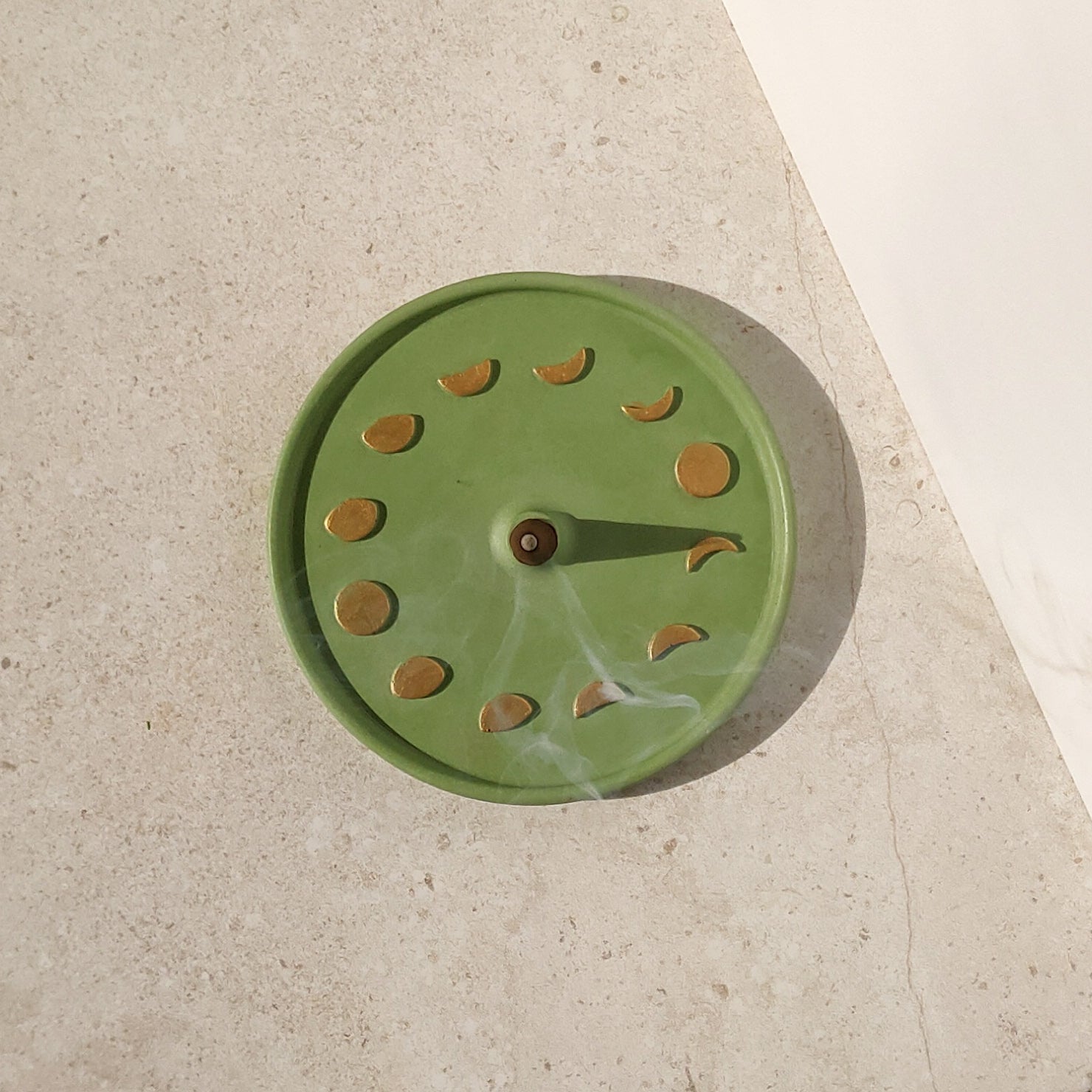 Moon Phases Round Incense Stick & Incense Cone Holder