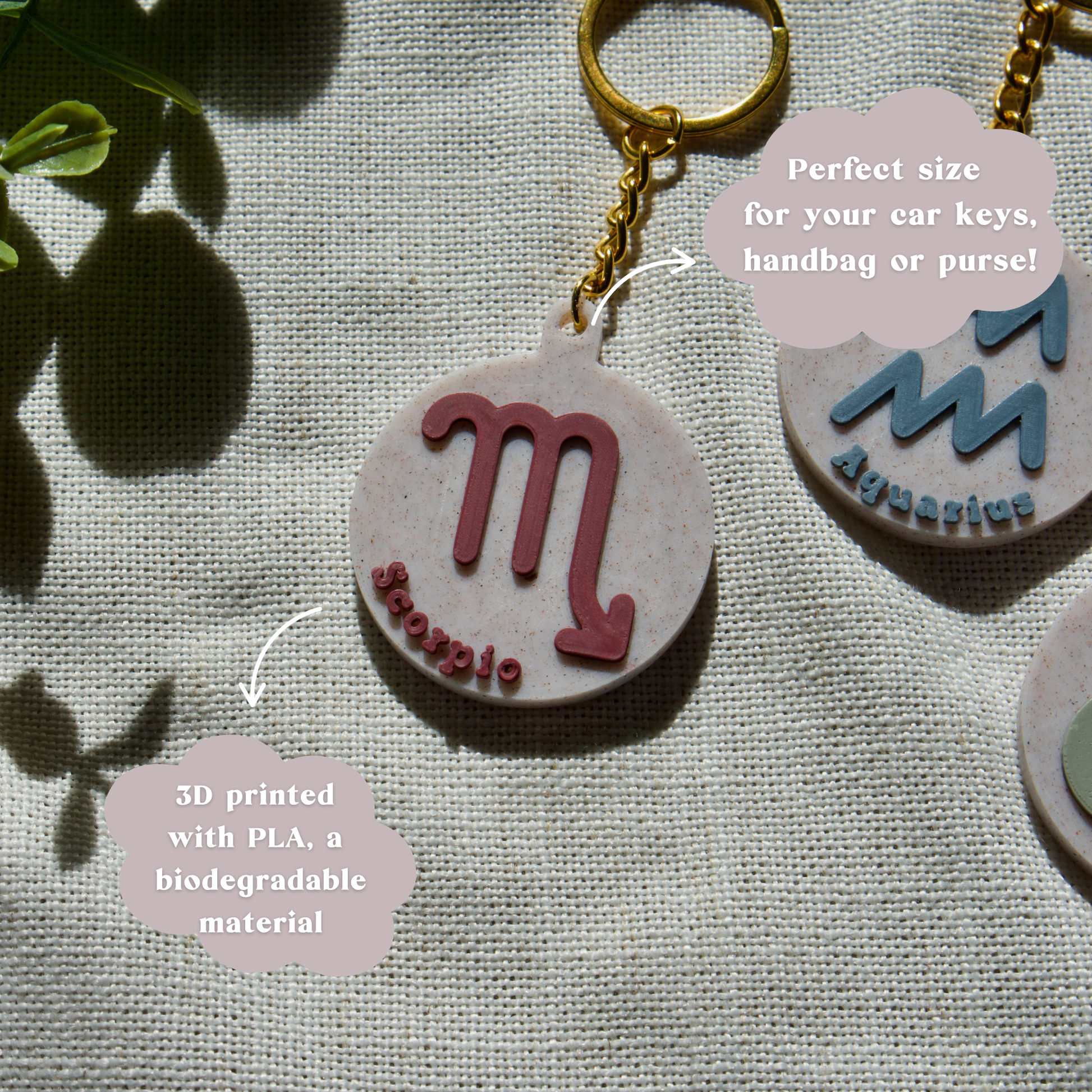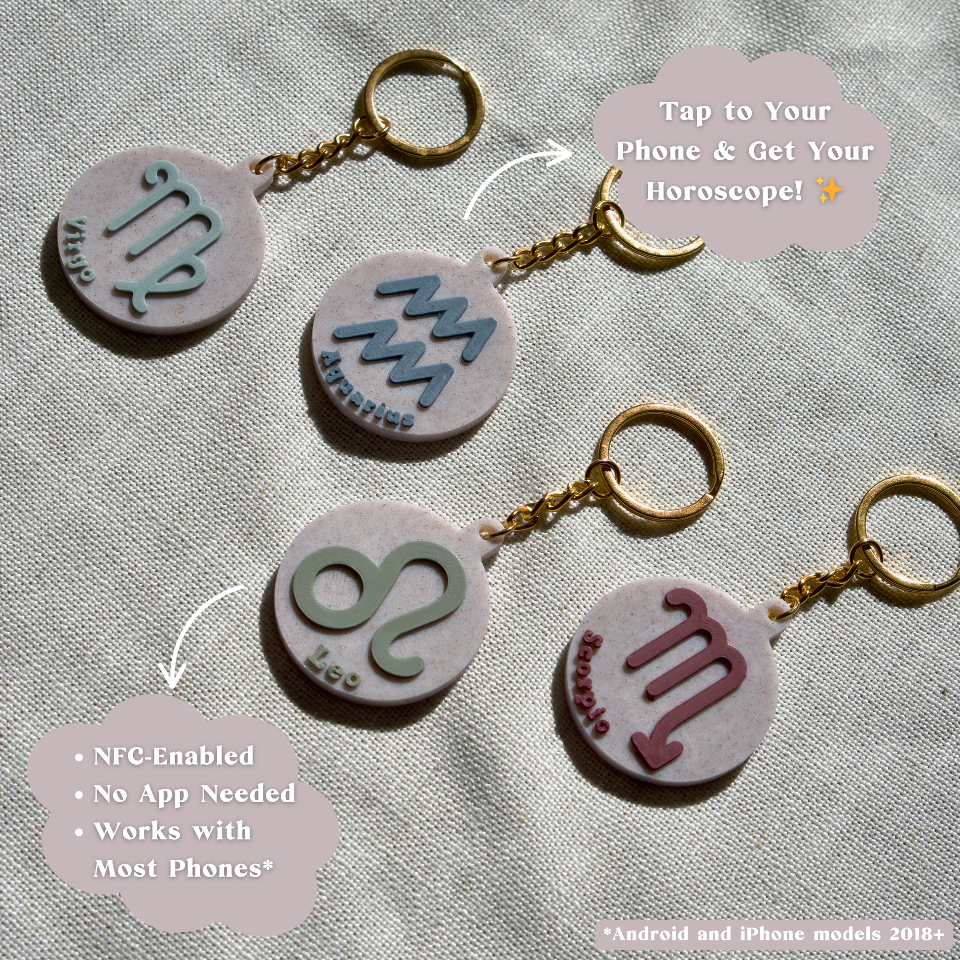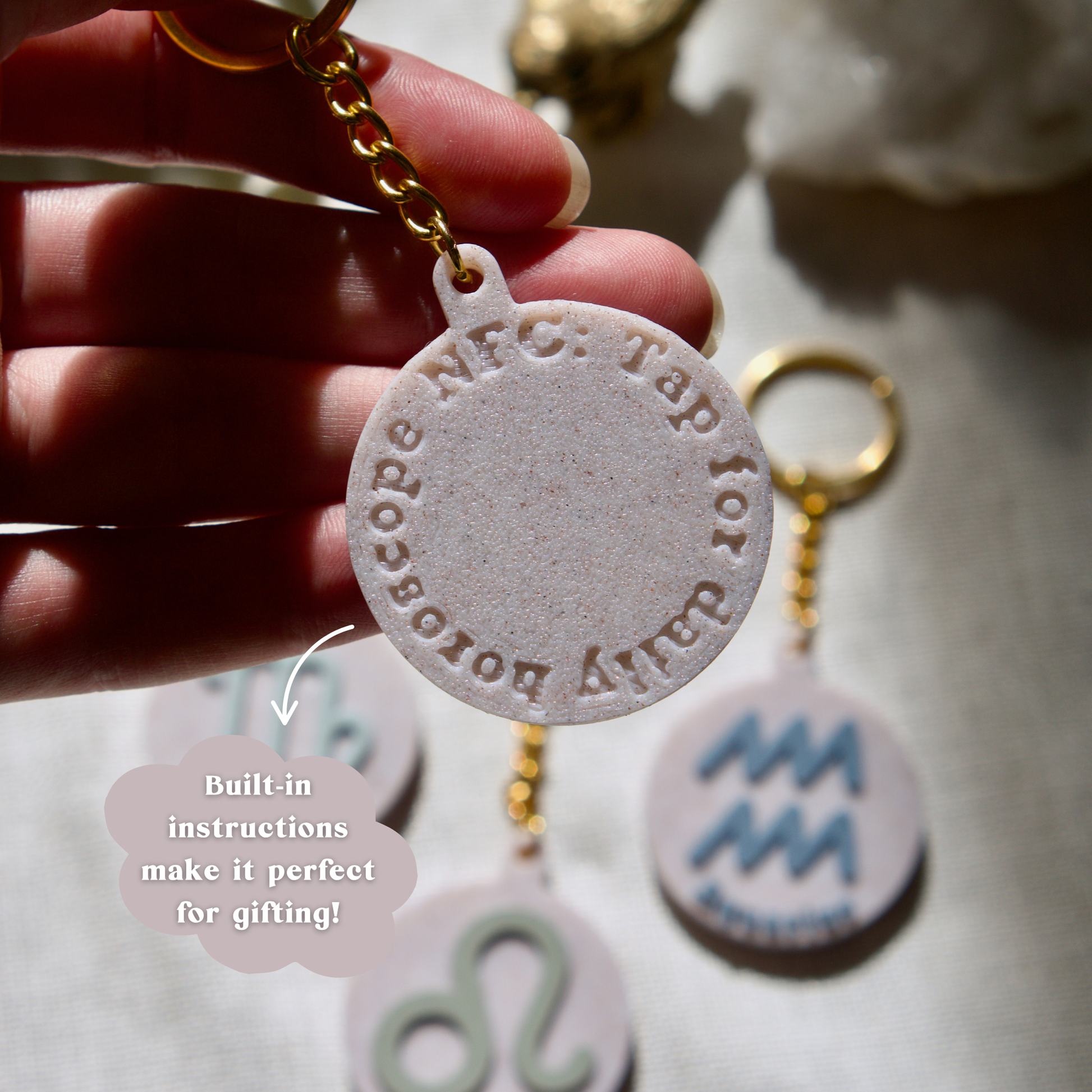 Zodiac Sign Keyring with NFC, Read Your Daily Horoscope with a Tap